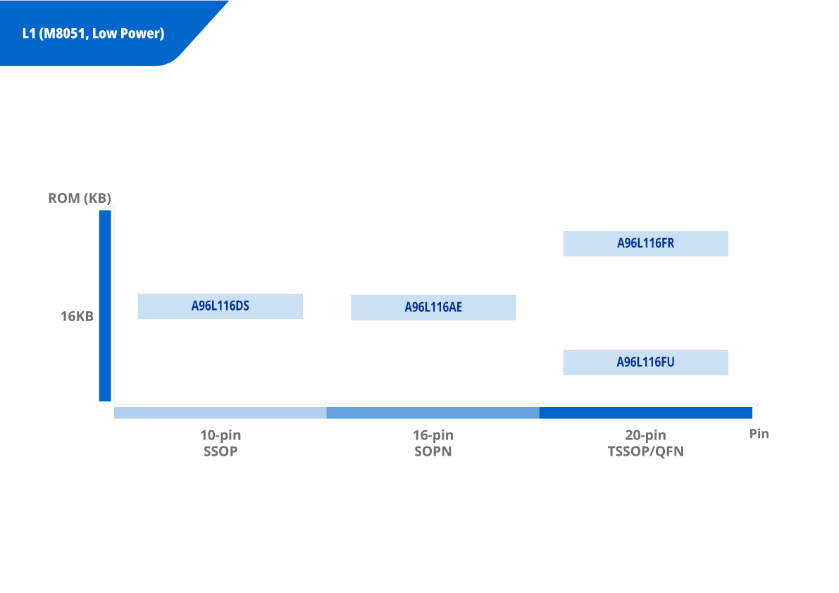 ▶ A96L116 : Max. 16KB Flash memory/ 1KB SRAM/ 256B Data Flash memory