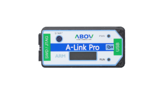 The A-LinkPro has a USB and a Serial Wire Debug (SWD) interface: When developing an application, the USB connector is connected to the PC host and SWD interface is connected to the target device.
