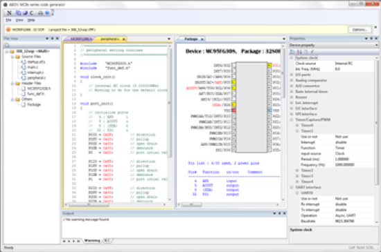 It helps users create C-based basic source code projects and provides easy and convenient user interface for setting up internal peripherals and port control.