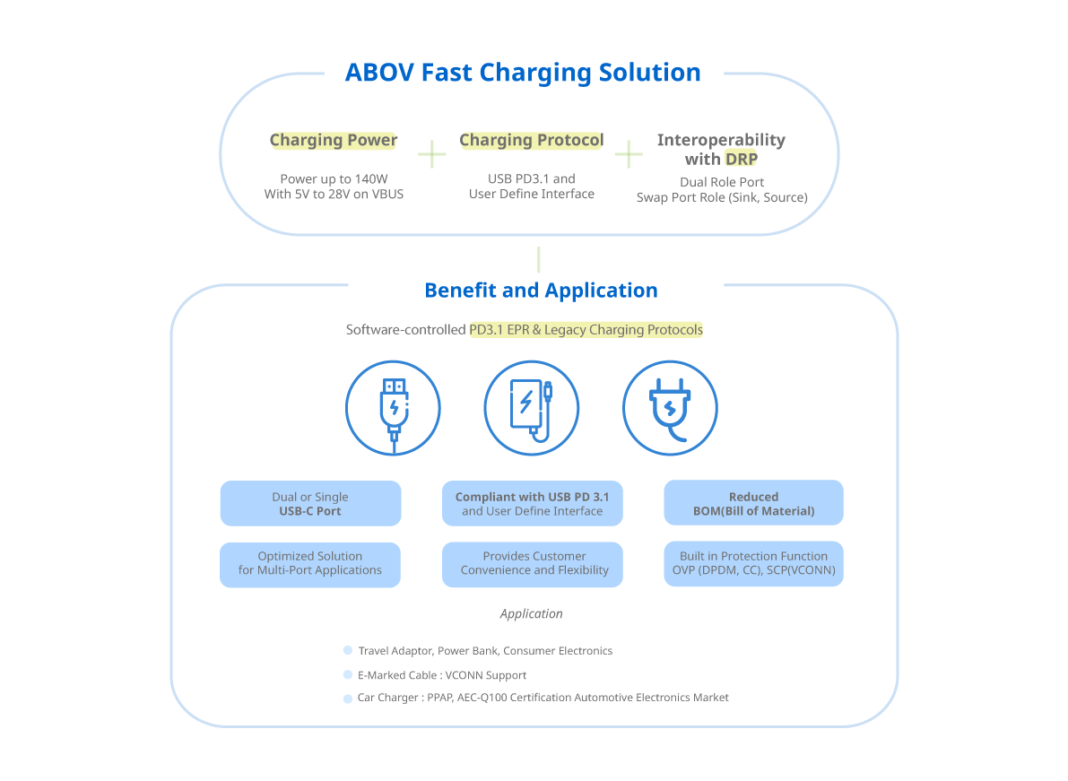 ABOV Semiconductor’s USB Type-C and USB power delivery portfolio offers a compact-sized charging solution with higher power,