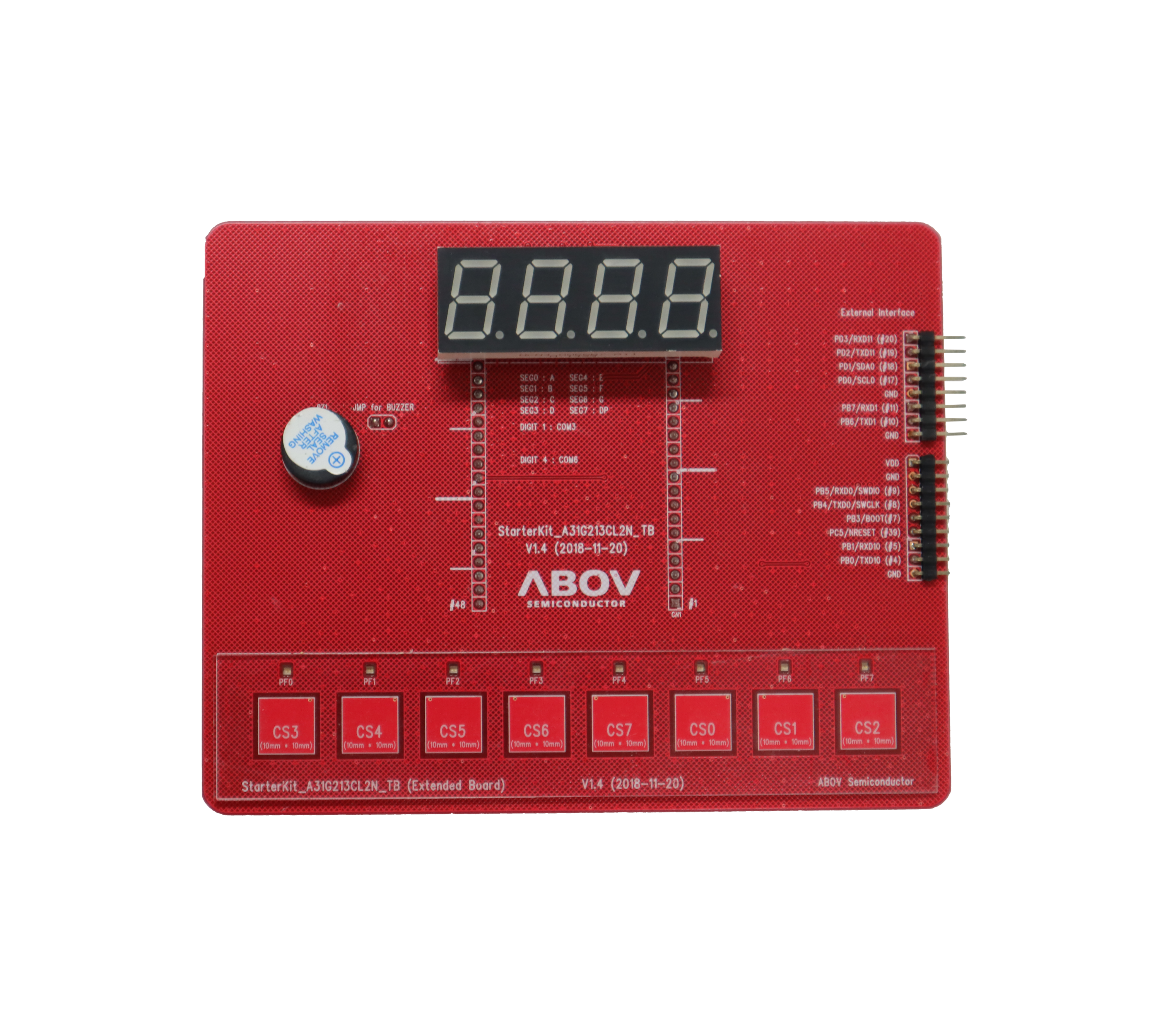The Starter Kit Shield Board_A31G213CL2N is based on A31G21x MCU, and includes Touch Key, LED Driver, and Buzzer.
