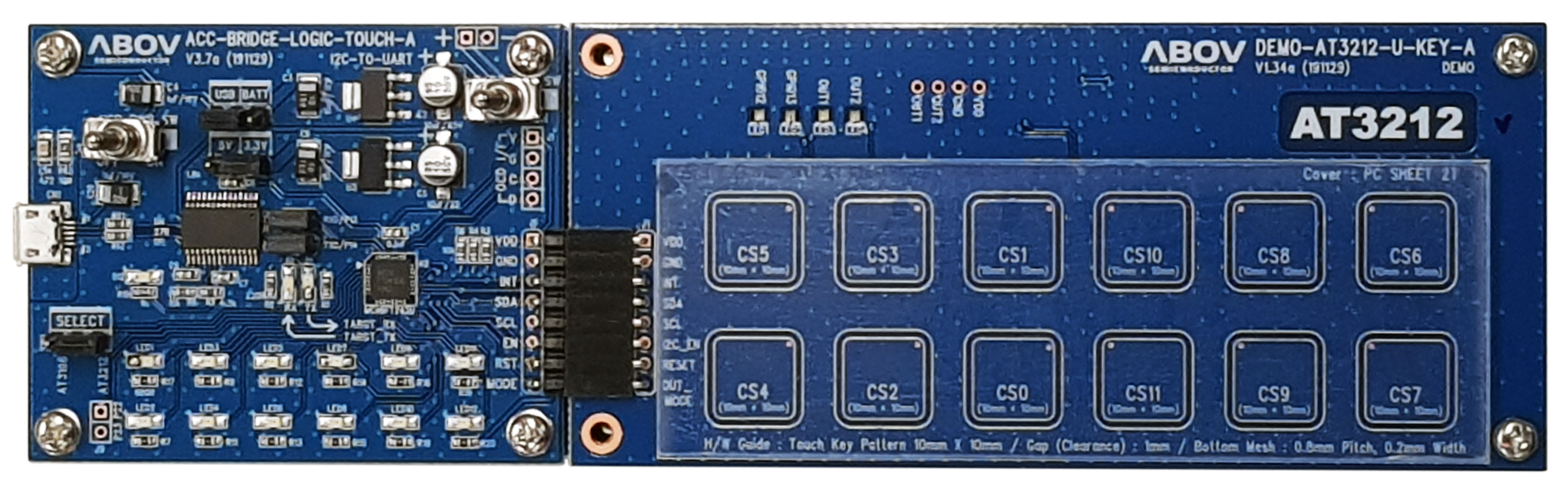 AT3212 Touch Key Demo Board supports users to develop applications that can use 12 channels Touch Key.